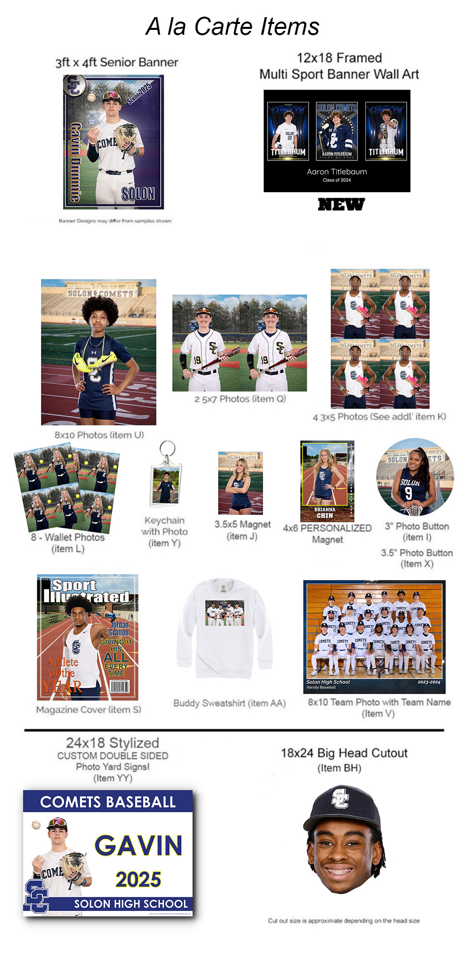 We are proud to offer Solon High School players and families a variety of a la carte Re-order options to commemorate this year's Spring Sports season.