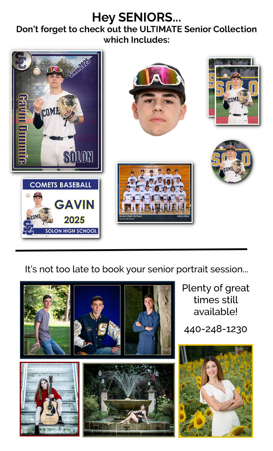 We are proud to offer Solon High School players and families a variety of photography packages and a la carte re-order options to commemorate this year's spring sports season.